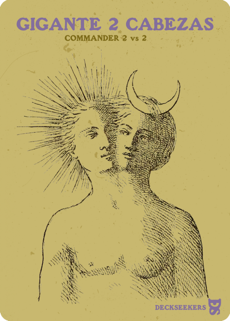 Una variante muy divertida es Two-Headed Giant o como decimos en españita, Gigante de 2 cabezas. Y dirás por qué ese nombre? Pues porque en estas partidas de commander a 4 jugadores, se juegan en equipos de 2vs2 donde cada equipo comparte las vidas, de ahí el nombre de la variante.